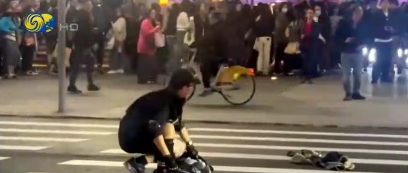 嫌犯随后转往与台北车站仅一站之隔的捷运中山站外,继续投掷烟雾弹、制造混乱,同时手持长刀随机袭击路人,之后就快速跑进人流密集的一家商场中,现场群众惊慌失措,四处逃散。